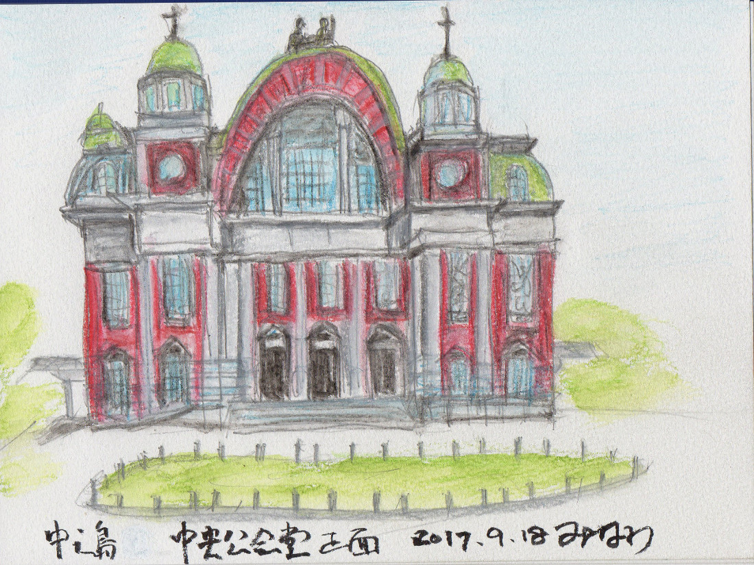 難波橋。12月9日、中之島公園で写生。寒い日でした。水彩絵の具