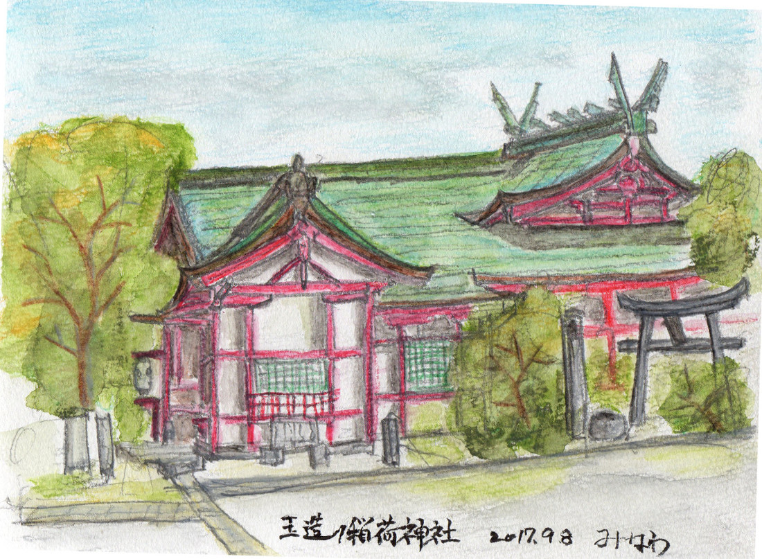 粟生五宇神社 スーパーマーケット裏にひっそり鎮座する小さな神社なのですが、折々見かける境内には常に人の姿が散見できるので、奇特なご仁もまま居られるものだと感じもし、そのまま打ち過ぎていたのです。日曜日、梅雨入り前の晴れ間がさわやかな昼下がり、神社の写生をしました。あとから訪れた老紳士が私の元へ近寄り「ミミズクは現れましたか?《と尋ねる。当方怪訝に思いながら見ないと答えると、ここはミミズクが生息するというのですこし知れ渡っているのですよ、と説明してくださった。灯台足元暗し、私はまったく知らなかった。こちらの地に移り住んではや16年にもなろうとするのに。
